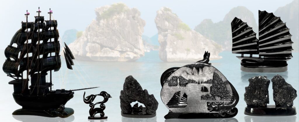Coal is a symbol of Quang Ninh Province, and artisans have turned this material into unique decorative items. Coal sculptures often depict boats, mountains, and cultural symbols of Ha Long.
